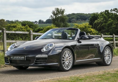 One of the prettiest open top 911s of all time, this is a wide body Triple Black 911 Carrera 4S Cabriolet produced in 2010, it is getting extremely hard to find these iconic sports cars with the right options and provenance. This 911 is a 997.2 series, the last generation of 911 with Hydraulic Steering, classic 993-esque styling, timeless design in Basalt Black Metallic, which has been machine polished and waxed. Black extended leather with contrast silver stitching, Black Electric Folding Hood with Glass Heated Rear Screen, which can be operated remotely with the key before you get in, and even up to 30mph while driving!