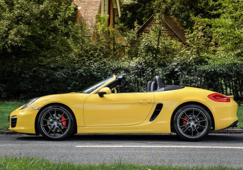 UK launch model 981 Boxster S, finished in striking Racing Yellow with 6-Speed Manual with Black leather and Satin Platinum 20-inch Carrera S alloy wheels. This actual car was featured in 2012 magazine articles reviewing the 981 Boxster S against rivals from BMW, Audi and Mercedes-Benz (it beat them all). The suite of choice options include Sport Chrono Plus Package with Stopwatch, PSE Switchable Sports Exhaust, PASM Switchable Suspension with -10mm ride height, 14-way Leather Sports Seats with lumbar support, drivers memory and easy-entry function, Porsche Torque Vectoring Limited Slip Differential (LSD), PCM 3.1 with Navigation and Phone Connectivity, 9-speaker 235 watt Sound System, Bluetooth® Music Streaming, Jukebox hard drive music system, DVD Dolby 5.1 Playback, iPhone/Audio connectivity, Park Assist Front and Rear, PDLS Bi-Xenon Dynamic Cornering Headlight System with daylight running LEDs, Sport Design Leather Steering Wheel, Wind Deflector and 20-inch Carrera S lightweight alloy wheels. The fully electric hood is Black and has a heated glass screen, it can be operated remotely using the keys and also at up to 40mph.